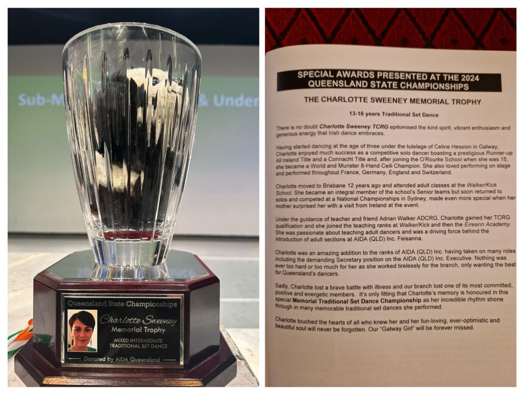 While living in Brisbane Charlotte was very much involved in Irish dancing, initially as a competitor and later as a teacher, having taken her TCRG qualification. Charlotte was also the secretary of the Australian Irish Dancing Association Queensland branch. Following Charlotte’s death, AIDA Queensland donated a trophy in her memory, to be presented at the […]